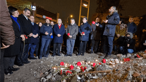 “Deprem Vergisi Yasası var. 1999'daki depremden hemen sonra çıkan ve her ay, her ay vergi veriyoruz depremin maliyetini en aza indirmek için. Ama nereye harcandığını bilmiyoruz. Yurttaşız, her ay telefon faturalarımızla vergi veriyoruz. Ama bunun depreme harcanıp harcanmadığını bile bilmiyoruz. Böyle bir ülkede yaşıyoruz maalesef. Bizlere düşen görev sizlerle birlikte sonuçta yönetemeyen, bir depremin sonuçlarını bile yönetemeyen, bunu başka bir türlü ranta çeviren bu anlayışa karşı mücadele etmektir. Ben de uzatmayacağım. Tekrar bütün yurttaşlarımızın anısı önünde saygıyla eğiliyorum."
