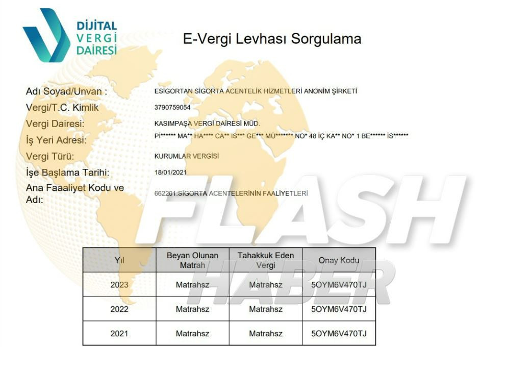 Gelir İdaresi Başkanlığı Vergi Dairesi kayıtlarına göre, Türkiye’nin en büyük sigorta şirketlerinin acentesi olan “Esigortan Sigorta Acentelik Hizmetleri Anonim Şirketi” bugüne kadar hiç vergi ödemedi.