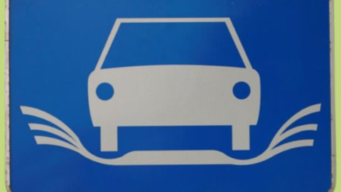 Belçika ve Hollanda otoyollarında görülen bu mavi zeminli işaret, suda kızaklama (aquaplaning) riskine dikkat çekiyor. Sembolde görülen “kanatlar”, lastiklerin altından sıçrayan suyu temsil ediyor. Bu da yağışlı havalarda aracın yola tutunma gücünü kaybedebileceği anlamına geliyor.