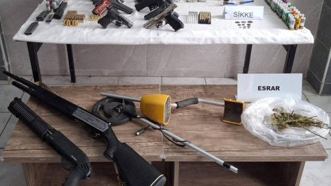 Aramalarda; 10 ruhsatsız tabanca, 11 kurusıkı tabanca, 33 tüfek, 2 şarjör, 298 tabanca fişeği, 222 tüfek kartuşu, 133 kurusıkı tabanca fişeği, 8 bıçak, 160 gram kubar esrar, 3 gram metamfetamin, 6 sentetik ecza hapı, 5 kök kenevir, 2 hassas terazi, 2 esrar öğütme aparatı, 19 uyuşturucu kullanma aparatı, 1 dedektör ve 11 sikke ele geçirildi.