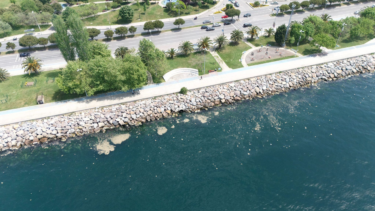 İstanbul’un Anadolu Yakası’nda, Maltepe sahil şeridinde müsilaj (deniz salyası) yeniden ortaya çıktı. Marmara Denizi’nde 2007-2008 ve 2021 yıllarında görülen ve deniz ekosistemini tehdit eden müsilaj, denizin yüzeyinde beyazımsı bir tabaka oluşturarak kıyıya yakın bölgelerde yoğunlaştı. Oluşum, dronla havadan görüntülendi.