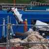 Fotoğraflarda, vinçlerle kamyonlara yüklenmeden önce, muşambalarla kaplı metal parçaları dikkat çekti.