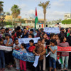 Gazze Şeridi'ndeki Deyr El Balah kentinde bulunan El Aksa Şehitleri Hastanesi'nin avlusunda düzenlenen gösteriye, doktorlar, aktivistler ve yerinden edilmiş çocuklar katıldı.