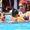 Demirel, kızlarıyla birlikte gittikleri plajın havuzunda objektiflere takıldı.