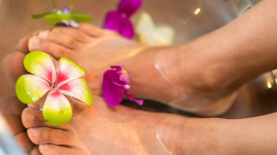 Bakımlı topuklar için ilk adım, ayakları ılık su ve gliserinden hazırlanan bir karışımda bekletmek. Bunun için 4 litre suya bir yemek kaşığı gliserin eklemek yeterli oluyor. Ayaklar yaklaşık 15 dakika bu karışımda bekletiliyor.
