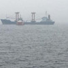 Gemideki yangını söndürmek için gemi personeli tarafından çalışma yürütülüyor.