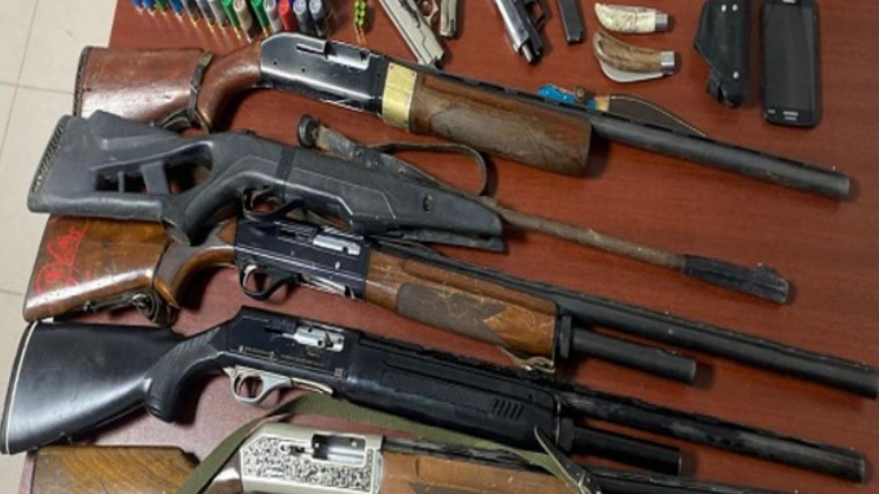 Yapılan aramalarda adeta cephaneliği andıran bir manzarayla karşılaşıldı. Operasyon kapsamında 3 tabanca, 5 av tüfeği, 5 kurusıkı tabanca fişeği, 68 av tüfeği fişeği, bir kama bıçak ve bir cep telefonu ele geçirildi.