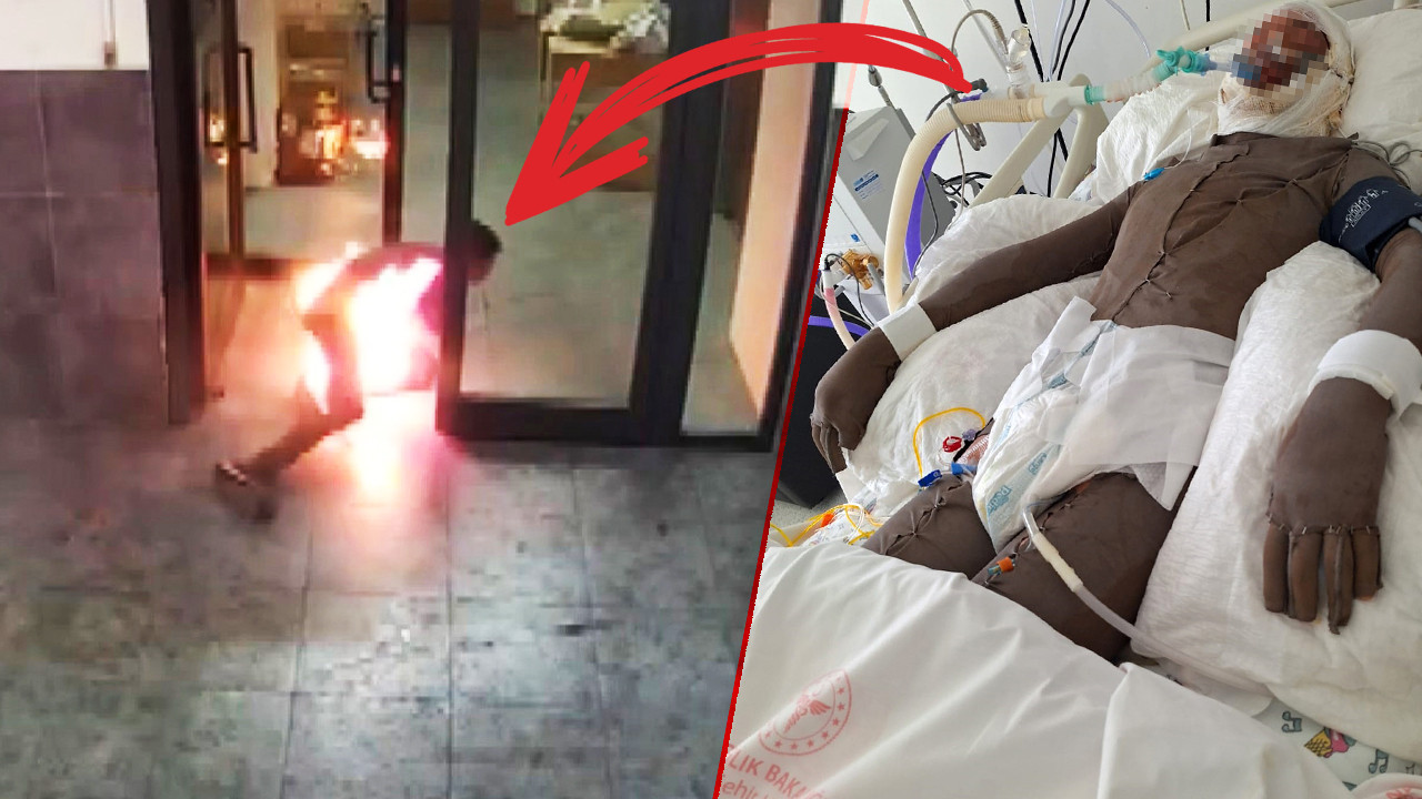 İş yerindeki diğer çalışanların yangın tüpleriyle müdahalesi sonucu hem E.A.'nın üzerindeki ateş hem de olayın yaşandığı odadaki yangının söndürüldüğü görüntülerde yer aldı.