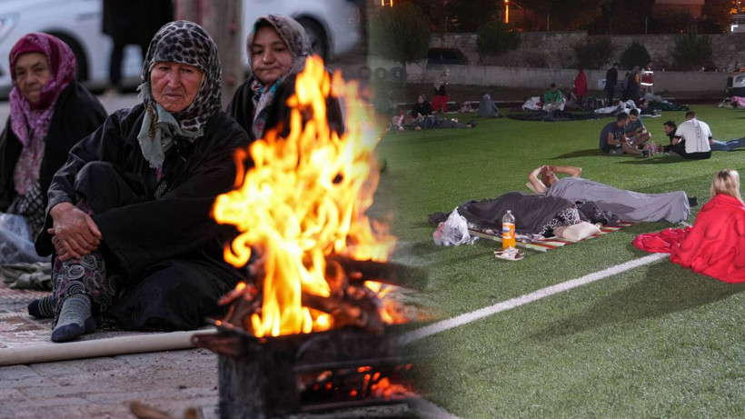 "Tekrar yola devam ettik. Oğlum aradı, 'Durum kötü.' dedi. Gölcük Mahallesi'nin olduğu yerlerde dağlardan duman çıkmaya başladı. Geceden beri de sürekli sarsılıyor. Gece kesinlikle eve girmedik. Kapı hafiften açılmıştı, içeri baktım. Her yer harabe olmuş, duvarlar birbirine girmişti. Her 5 dakikada, 3 dakikada bir gürültülü bir şekilde sarsıntı devam etti. Bu şartlarda eve girmeyi düşünmüyoruz, korku var üstümüzde."