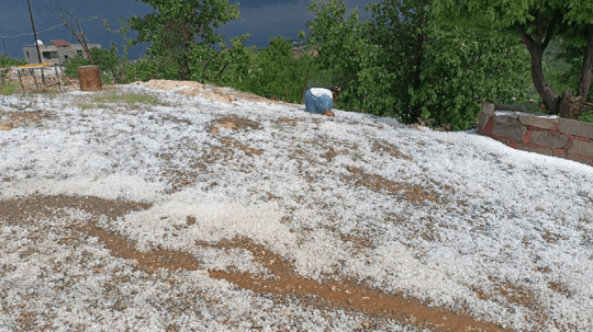 Çiftçi Muhittin Simpil, "Bugün saat 14.30’da bir anda hava karardı, ardından gökyüzü ceviz büyüklüğündeki dolularla adeta yere indi. Yaklaşık 20 dakika süren bu yağış, bütün emeğimizi aldı götürdü. Bağlarımız, sebze bahçelerimiz mahvoldu. Üzüm, domates, biber, her şey darmadağın oldu. Ne yapacağımızı bilmiyoruz" ifadelerini kullandı.