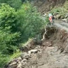 Heyelan nedeniyle yolun çökme anı kameralara yansıdı