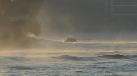 Deniz yüzeyinden yükselen buhar, sabah manzarasına farklı bir görüntü kattı. Boğaz’dan geçiş yapan gemilerin pruvasında ise yunusların yüzdüğü anlar kameralara yansıdı.