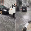 Aniden başlayan dolu yağışı, sel sularına neden oldu. Kimi vatandaşlar işletme tentelerinin altına kaçarken, çocuklarda yürüme devam etti.