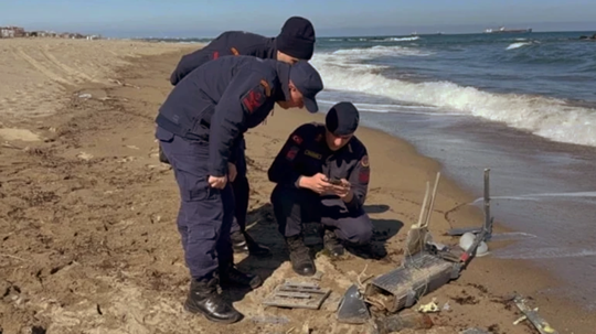 Sakarya’nın Karasu ilçesinde sahilde parçalanmış halde bir insansız hava aracı bulundu. Patlayıcı ihtimali üzerine ekipler bölgede 400 metrelik güvenlik çemberi oluşturdu.
