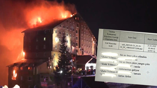 Zeki Yılmaz’ın telefon dökümünde 21 Ocak gecesi saat 03.30’da otel yetkilileri ile 14.6 saniyelik görüşme yaptığı ve otel yetkililerine ‘Bir an önce çıkın efendim. Bir an önce çıkın yangın çıktı. Restorandan geliyor. Lütfen lütfen” şeklindeki konuşması da dava dosyasında yer aldı.