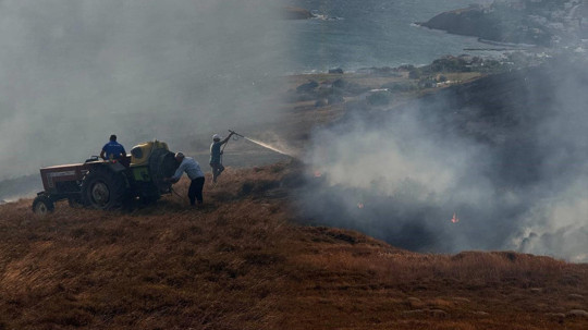 Nüfus olarak çok az kişinin yaşadığı küçük adada yangının çıkış nedeni bilinmezken, rüzgarın etkisi ile yayılan yangın, adada bulunan rüzgar enerji türbinlerine ulaştı. İtfaiye ile birlikte mahalle sakinleri de traktörlerine bağladıkları su tankerleriyle, yangın söndürme çalışmalarına destek verdi.