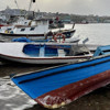 Sahil bandında bulunan ve daha önce onarım için kıyıya çekilen kayıklar, deniz seviyesinin yükselmesiyle suyun içinde kaldı.