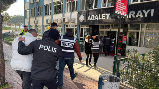 Balıkesir'e getirilen 7 zanlı, emniyetteki işlemlerinin ardından adliyeye sevk edildi. Mahkemeye çıkarılan şüphelilerden 2’si tutuklanırken, diğerleri adli kontrol şartıyla serbest bırakıldı.