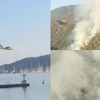 Muğla'nın Marmaris ilçesinde orman yangını çıktı. Ekipler, alevlere havadan ve karadan müdahalede bulunuyor.