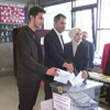 Murat Kurum ile eşi Şengül ve oğlu Mehmet Kurum, oyunu kullanmak için saat 11.15'te Kağıthane İmece İlkokulu'na geldi.