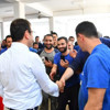 İBB'nin seçilmiş Başkanı Ekrem İmamoğlu, Hadımköy'de ziyaret ettiği bir fabrikada işçilerle buluştu.