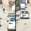 Gençlerin doğal gaz dağıtım firmasının aracını polis sanarak kaçtığı anlar kamerada
