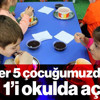 Okul çağındaki çocuklarımızın yüzde 19,3’ü, yani her 5 çocuğumuzdan 1’i maddi nedenlerden ötürü okulda yemek yiyemiyor. Dersini dinlemesi gereken çocuklarımız açlıkla boğuşuyor. Her 5 çocuğumuzdan 3’ü yeterli protein ve sağlıklı yağ tüketemiyor. Karbonhidrat ağırlıklı ucuz gıdalarla karnını doyuruyor ama vücudunun ihtiyaç duyduğu besinleri alamıyor.