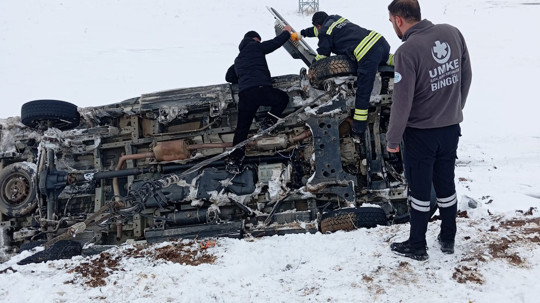 Bingöl'ün Karlıova ilçesi Kıraçtepe köyü mevkiinde meydana geldi. Edinilen bilgilere göre, içerisinde hasta çocuk, yakını ve 3 sağlık görevlisinin bulunduğu ambulans, sürücüsünün kar nedeni ile kayganlaşan yolda direksiyon hakimiyetini kaybetmesi sonucu devrildi.